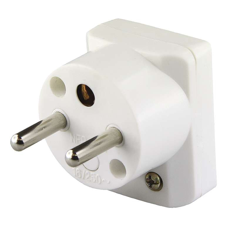 Klasická vidlica pre pohyblivý predlžovací prívod s praktickou možnosťou otočenia vnútorného zapojenia.produkt: vidlica pre pohyblivý prívodnapätie/prúd: 250 V~/16 A max.detské clonky: niefarba: bielakrytie : IP20materiál: plasttyp: FRENCHvonkajšie použitie: nie