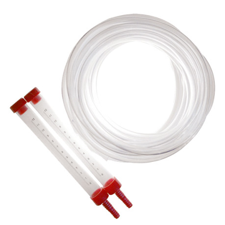 Vodováha určená na vyrovnanie vzdialených bodov. Zátky zabraňujú vytekaniu vody z miesta, kde sa vykonávajú merania.