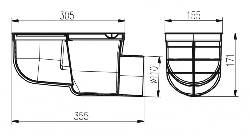 Vpusť kanalizačná bočná D110 ČIERNA (MCH-325 D)
