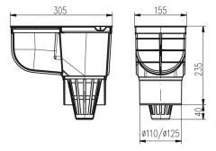 Vpusť kanalizačná spodná D110 ČIERNA (MCH-325 A)
