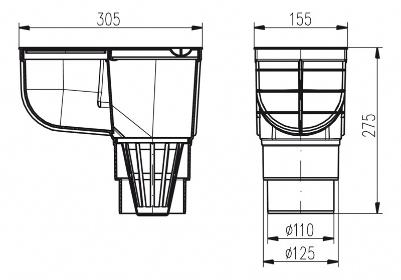 Výrobok má kombinovaný odtok D 110/125 mm.
