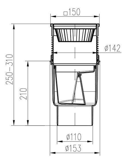 - Vpusť kanalizačná spodná D110 (suchá klapka, nerezová mriežka) (MCH-727 S N)