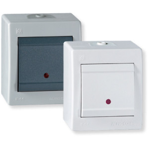 - Vypínač č. 1 jednopólový na povrch s orientačným osvetlením ~ IP44 šedá