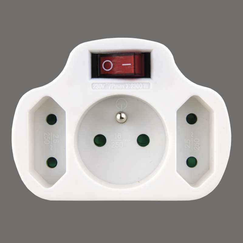 Zásuvka rozbočovacia 2x plochá + 1x guľatá + vypínač (P0029)