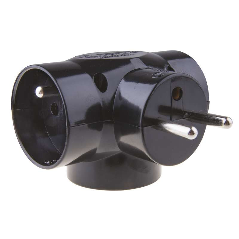 Zásuvka rozbočovacia 3x, guľatá - čierna (P0030)
