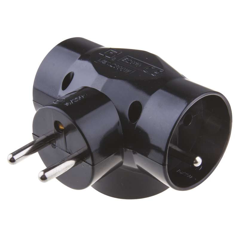 - Zásuvka rozbočovacia 3x, guľatá - čierna (P0030)