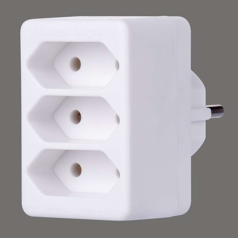 Kvalitná rozbočovacia zásuvka v bielom prevedení. Praktické využitie v každej domácnosti, kancelárii, dielni atď.produkt: rozbočovacia zásuvka 3×počet zásuviek: 3× 2Pnapätie/prúd: 250 V~/3× 2,5 A max.detské clonky: niefarba: bielakrytie : IP20materiál: plasttyp: plochá 2,5 Avonkajšie použitie: nie