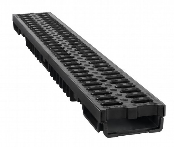 - Odvodňovací žľab triedy únosnosti A15 s polypropylénovou mrežou, nízkou hmotnosťou a s jednoduchou montážou.